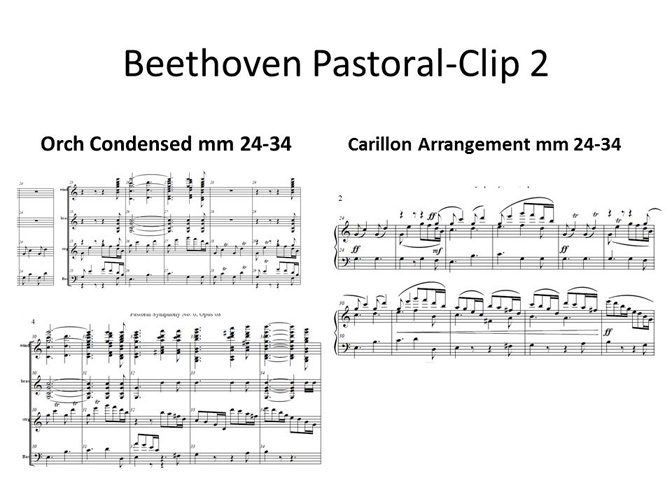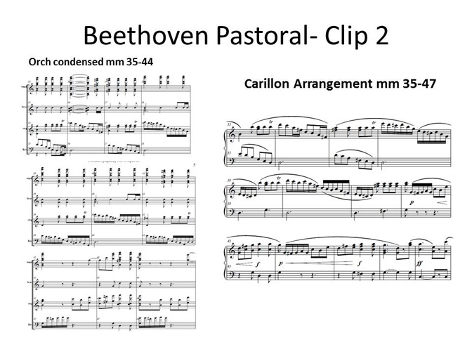 Beethoven passes his themes all the way up and down the full range of octaves and instruments. It is wonderful to keep moving all up and down the range of the carillon. It keeps the musical interest! However, since bells volume need to be balanced and big bells are louder and more powerful, some octave switching is necessary.
